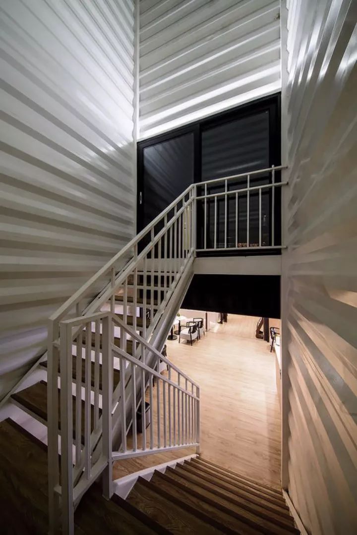 國(guó)內(nèi)大多數(shù)設(shè)計(jì)單位普遍對(duì)集裝箱缺乏深刻理解,難以將集裝箱的優(yōu)點(diǎn)發(fā)揮到極致;而集裝箱制造商又無(wú)法把控建筑的功能和美感。這是一家集裝箱設(shè)計(jì)制造一體化的公司,他們包攬了這組集裝箱建筑的全流程:建筑設(shè)計(jì)、室內(nèi)設(shè)計(jì)、集裝箱制造和改造、保溫隔熱、內(nèi)部裝修、門窗、空調(diào)、燈光、景觀平臺(tái)、運(yùn)輸、吊裝合現(xiàn)場(chǎng)安裝等等。