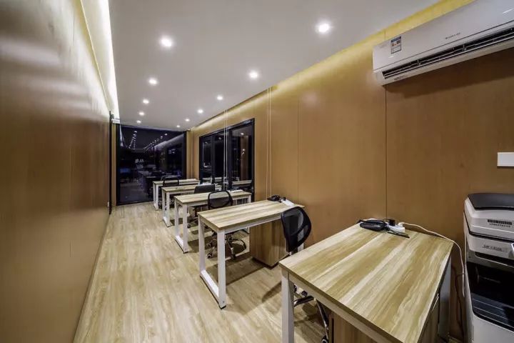 接待區(qū)由2個(gè)海運(yùn)集裝箱連通而成,用專業(yè)的結(jié)構(gòu)措施突破了集裝箱開(kāi)間的限制。