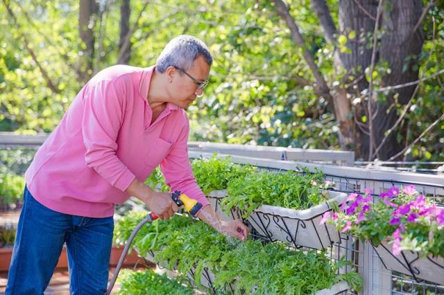 ▼整個屋頂花園的澆灌系統(tǒng),也暗藏玄機,微噴技術(shù)灌溉蔬菜花草,遠(yuǎn)遠(yuǎn)看過去,整個屋頂,就像是一個仙境一般。這樣功能齊全的循環(huán)廚房,難道你不羨慕嗎?