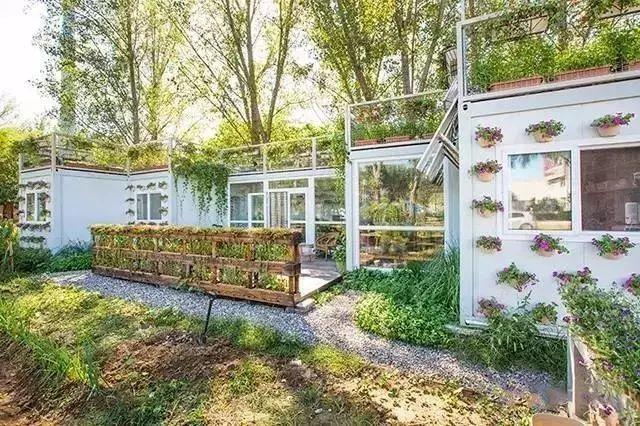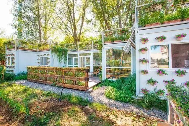 而集裝箱的屋頂上,也被牛大叔改造成了一個純天然的菜園花園,滿目都是鮮花和蔬菜,在這里過上自給自足的生活,簡直太詩意!