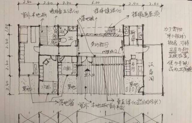 作為53歲的高齡北漂大叔,牛大叔自己花了好多張草圖,并且對集裝箱豪宅的水電垃圾處理、循環(huán)系統(tǒng)、綠化植物,也做了詳細(xì)的設(shè)計。
