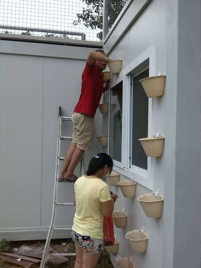 ▼集裝箱的墻面上,牛大叔掛上了花盆,并且種植了許多花花草草,原本白色單調(diào)的墻面,成為了一組西班牙風(fēng)格的花墻,真的太美了!