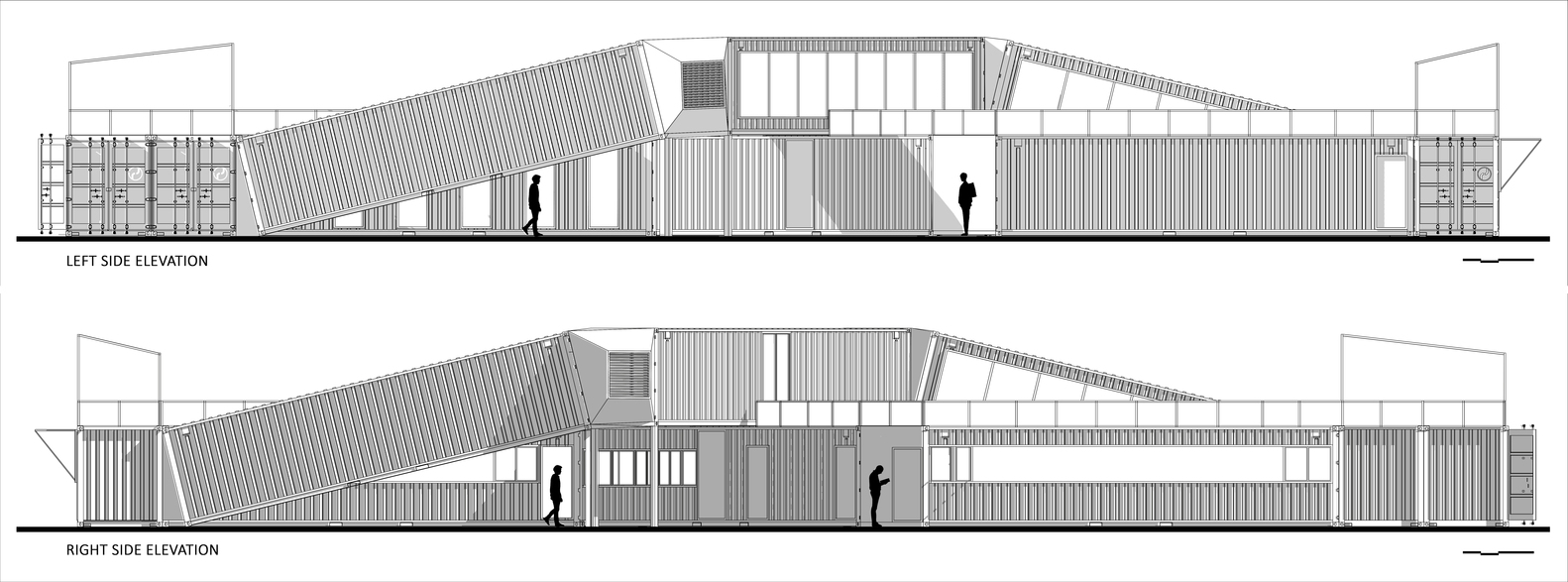 Cafe Infinity學生中心,交叉的彩色集裝箱