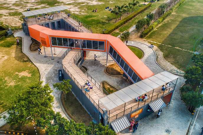 Cafe Infinity學(xué)生中心,交叉的彩色集裝箱